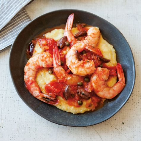 • Shrimp in Tomato-Olive-Caper Sauce with Polenta