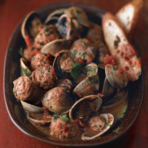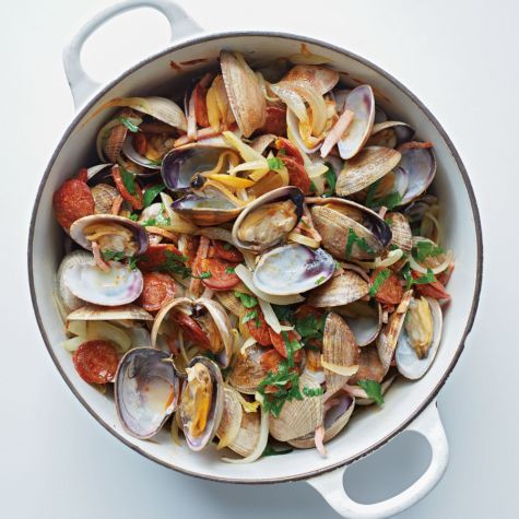 • Clam and Chorizo Stew with Pickled Shrimp Relish