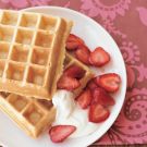 Serve the waffles with a dollop of yogurt on top, scattered with sliced strawberries. Makes 6 waffles; serves 4 to 6.
