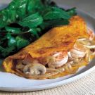 In a 10-inch nonstick fry pan over medium heat, warm 2 Tbs. of the canola oil. When the oil is hot, pour in 1⁄4 cup batter and quickly swirl to cover the pan bottom evenly. Cook until the crepe is crisp and brown at the edges and set in the middle, 5 to 7 minutes. Remove from the heat and, using a wide spatula, slide the crepe, crisp side down, onto a platter. Spread 3 heaping Tbs. of the mushroom mixture onto half of the crepe. Carefully fold the crepe over the filling. Repeat to make 3 or 4 more crepes, adding more oil to the pan if needed and evenly distributing the shrimp among the crepes.