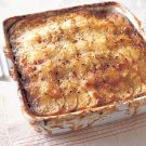 Cover the dish with aluminum foil and bake until the potatoes are tender when pierced with a sharp knife, about 45 minutes. Remove the foil and bake until the mixture is golden brown and bubbly, about 20 minutes more. Let the gratin rest for about 10 minutes, then use a sharp-bladed spatula to cut it into squares and serve immediately. Serves 4 to 6.