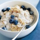 Using a large spoon, gently stir the blueberries into the hot oatmeal. Divide among individual bowls and serve immediately. Serves 4.