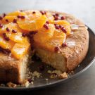 Just before serving, top the cake with the orange slices and pomegranate seeds and drizzle with the honey. Cut into wedges and serve. Serves 12.