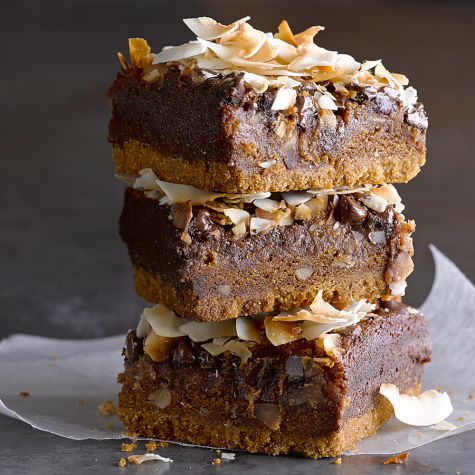 Our popular Ooey Gooey Pumpkin Bars have been updated to be even more decadent, with the addition of semisweet chocolate chips and a generous layer of flaked coconut. Be sure to let them cool thoroughly before cutting them, as they are too soft to cut neatly while they are still warm.