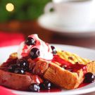 This French toast (known as pain perdu in France) is prepared using slices of panettone. Served with cherries and whipped cream, this fanciful dish is perfect for the winter holidays.