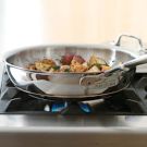 These fried potatoes get a flavor boost from smoky bacon, garlic and fresh herbs. Be sure to dry the potatoes well before frying to help prevent spattering.