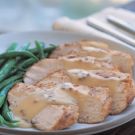 Place the chicken between 2 sheets of waxed paper. Using a meat pounder or the flat bottom of a heavy pan, lightly pound the chicken until it is about 1/2 inch thick. Season generously with salt and pepper.