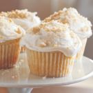 Using a paring knife, cut a 1 1/2-inch-wide cone-shaped core halfway down into the center of each cupcake; gently remove the cores and set aside. Fill each cupcake with about 1 Tbs. of the passion fruit curd and replace the cores. Frost the cupcakes with the coconut frosting and sprinkle with the chopped nuts. Let the frosting set for about 15 minutes, then serve. Makes 12 cupcakes.