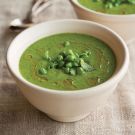 Although this quintessential spring soup can be made with frozen peas if necessary, this is the perfect way to showcase the tender fresh peas that are available at the farmers’ market in the spring. For an elegant garnish, swirl crème fraîche on top before serving.
