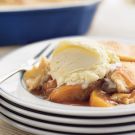 Made with fresh peaches, this homey cobbler captures the essence of summer. Scoops of homemade vanilla ice cream add the finishing touch.