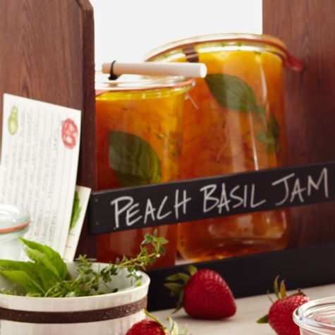 Basil lends a refreshing herbal note to peach jam in this recipe from Amy Deaver, owner of Lemon Bird Handmade Jams. Use the most flavorful peaches you can find, preferably locally grown ones. Be sure to adjust all canning and cooking times for altitude.
