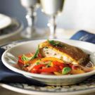 Divide the peperonata among 4 individual bowls and top each with 1 fish fillet, breaded side up. Garnish with parsley and serve immediately. Serves 4.