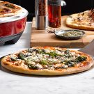Using the pizza peel, transfer the pizza to a cutting board. Preheat the pizza maker again, assemble the remaining pizza and bake on the classic setting. Dab the pizzas with chiles to taste, cut into slices and serve immediately. Makes two 10-inch (25-cm) pizzas.