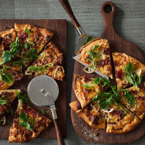 This recipe was created for the Breville pizza maker. To bake the pizza in a standard oven, place a pizza stone in the oven and preheat the oven to 500°F (260°C). Roll out the dough as directed below, but don’t prick it with a fork. Add the toppings and bake on the pizza stone for 10 to 12 minutes.