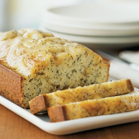 Poppy seeds add a crunchy texture and slightly nutty taste to this sunny yellow quick bread. Because the batter is particularly thick, the citrus curd can be spread on top of it and will remain there, rather than sink to the bottom of the pan. The addition of lemon zest to the batter intensifies the bread’s citrus flavor.