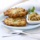 Serve as soon as the last batch is cooked; latkes stay crisp only a few minutes. Transfer the latkes to individual plates and garnish with chives. Pass caramelized applesauce alongside. Makes 24 latkes.