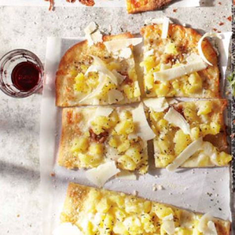 Tender chunks of potatoes, minced fresh rosemary and roasted garlic are combined in a unique and delicious topping for this Roman-style pizza, which is made with a traditional thin crust.