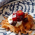 A homemade beet relish gives a flavor boost to potato latkes, which are simple to make with our latke starter.