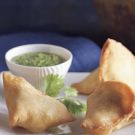 In a deep fryer, heat oil to 350°F according to the manufacturer's instructions. Fry the samosas a few at a time, turning often, until golden, 3 to 5 minutes. Using a slotted spoon, transfer the samosas to the prepared baking sheet and keep warm in the oven until ready to serve. Serve with cilantro-mint chutney. Makes 32.
