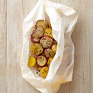 When steamed in parchment-paper packets, potatoes emerge exceptionally tender and creamy. Feel free to swap in other herbs for the rosemary and thyme, such as sage or oregano. The recipe was created for a Cuisinart steam oven, although you can also use a conventional oven. Assemble the packets as directed below, then bake in a preheated 375°F oven until the potatoes are tender, about 40 minutes.