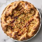 A classic pastry filling used in many Italian-inspired desserts, frangipane is typically made from almonds ground together with sugar and eggs, but here we put a different spin on it by using pistachios. Serve with a scoop of vanilla ice cream if desired for the perfect finale to Thanksgiving dinner or any autumn celebration.