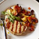Quick-Brined Pork Chops with Fruit Compote and Smashed Potatoes