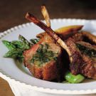 Place the racks of lamb in an oiled roasting pan just large enough to hold them comfortably. Roast for 10 minutes. Reduce the oven temperature to 375°F and continue roasting the lamb until an instant-read thermometer inserted into the rack, away from the bone, registers 125°F for very rare to rare, 10 to 15 minutes. Transfer the lamb to a carving board, cover loosely with aluminum foil and let rest for 5 minutes.