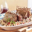 To recommend a wine for this dish, we turned to Karen MacNeil, wine programs chair, Culinary Institute of America, and author of The Wine Bible. Here's what she had to say: "Lamb has a sweet gamelike meatiness that begs for red wine. For these racks, however, not just any red will work. Thanks to the mustard, demi-glace and roasting crust, the flavor ante has been upped. The perfect wine needs to match the lamb's meatiness and intensity and have enough grip to withstand all the dramatic seasoning. My favorite choice: a French Châteauneuf-du-Pape or California Rhone blend."