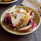 Pairing brilliant red radicchio with golden-, green-, or red-skinned pears results in a festive salad that can brighten up any gloomy winter day. Goat cheese and walnuts accompany the radicchio here, but a mild blue and almonds or pistachios can be used in their place.