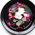 Our beautiful red risotto is tailor-made for a Valentine’s Day dinner with someone special. Be sure to buy beets with the tops still attached, as you will need both the beetroots and the greens for this recipe.