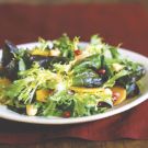 Tear the oakleaf and frisée leaves into bite-size pieces and put them in a large bowl. Add the persimmons. Whisk the vinaigrette, add most of it to the salad and toss well to coat. Taste and adjust the amount of the vinaigrette and the seasonings. If serving the salad family style, add the pomegranate seeds and hazelnuts and toss. Or, divide the salad among individual salad plates and sprinkle each serving with pomegranate seeds and hazelnuts. Serve immediately. Serves 8 to 10.