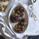 A colorful side dish for the Thanksgiving feast, these stuffed acorn squashes are hearty enough for a vegetarian main course. They are delicious served warm or at room temperature, so you can cook them ahead of time, freeing up space in your oven.