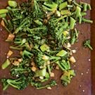 Scrape the contents of the fry pan into a baking dish, add the remaining 1/2 Tbs. olive oil and turn to coat. Transfer to the oven and roast until the broccolini is tender-crisp, 10 to 12 minutes. Transfer to a platter and serve warm or at room temperature. Serves 4.