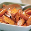 This unusual combination of flavors will be popular with everyone at your table. Oven roasting concentrates the natural sugar in the carrots, giving them an extra flavor dimension. Serve these carrots with roasted chicken or fish and a green vegetable, such as green beans.