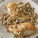 Transfer the chicken to a plate, pour any pan drippings around the chicken and let rest for 3 to 4 minutes. Spoon the beans and a little of their cooking liquid alongside the chicken and drizzle with the remaining 2 Tbs. olive oil. Serve immediately. Serves 4.