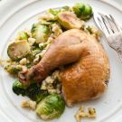 Roasted Chicken with Spaetzle, Brussels Sprouts and Smoked Apple Puree