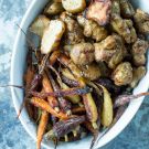 Arrange the carrots and sunchokes in a single layer on separate nonstick baking sheets. Transfer to the oven and roast for 10 minutes. Stir the vegetables, then rotate the baking sheets from top to bottom and 180 degrees. Roast for 10 minutes more and stir again. After 20 minutes, the vegetables should be almost done; they should be soft but not falling apart and still have a little bite to them. Continue roasting as needed, checking and stirring every 5 minutes.