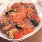 Transfer the vegetables to a platter, top with the romesco sauce and serve immediately. Serves 4 to 6.