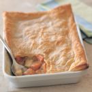 Remove the thyme sprigs from the roasted vegetables and discard the sprigs. Pour the sauce over the vegetables and stir well. Season with salt and pepper. Remove the pastry from the refrigerator and carefully fit on top of the vegetables. Bake until the pastry is golden and puffed and the filling is bubbling, 10 to 12 minutes. Serve directly from the pan. Serves 4 to 6.
