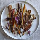 In this autumnal dish, root vegetables are roasted with maple syrup and mustard until nicely caramelized. The syrup highlights the vegetables’ natural sweetness, while the mustard provides a pleasantly pungent bite.