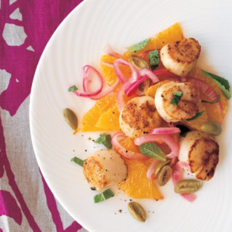 • Seared Scallops with Orange and Red Onion Salad