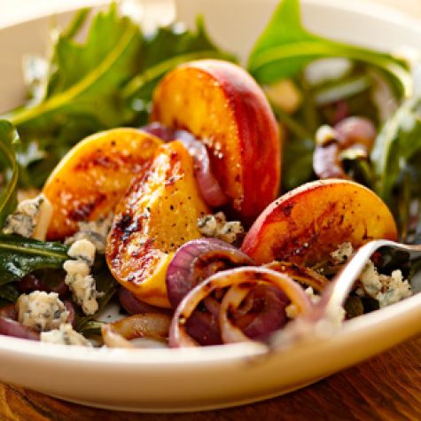 • Grilled Peaches, Gorgonzola and Dandelion Greens