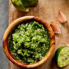 This delicious green salsa goes equally well with tortilla chips as it does with almost any type of grilled meat. It adds a little heat and a distinct Mexican flavor.