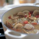 Ladle the soup into warmed bowls, discarding any clams that failed to open, and serve immediately. Serves 4.