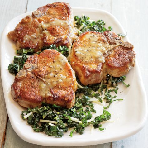 Sautéed Pork Chops with Kale Salad