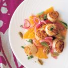 This salad makes a stylish lunch dish or a light supper. Oranges, scallops and even onions are at their best in the wintertime, and these lively flavors will help brighten up a gloomy afternoon or evening.
