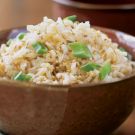 Medium-grain brown rice, often sold as short-grain brown rice, has a sticky texture and a nutlike aroma and taste. Asian sesame oil, which has a rich toasted flavor, complements the distinctive nature of the rice. If there are leftovers, transform them into a rice salad by adding grated carrot and a generous drizzle of rice vinegar.