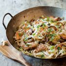 Made from rice, wide pad Thai noodles are naturally free of gluten. They offer the perfect texture for a rich, fragrant sauce and a topping of tender chicken breast, crunchy cabbage and savory shiitake mushrooms.