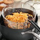 Use a mandoline to cut the onions into narrow strips. Serve these crispy fried onions alongside our barbecue sloppy Joes.