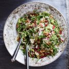 Two favorite autumn vegetables—brussels sprouts and kale—come together in this healthful salad. If you’ve never eaten these vegetables raw, you’re in for a delicious surprise. A sprinkling of pomegranate seeds adds a pop of color.